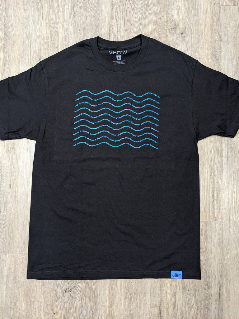Stylish Wave pattern design that, if you look closely, you'll see our VH07V logo flipped and repeated to form the wave patterns. Comes on a Black Tee with our Shaka icon on the back right ribcage. 6 oz. 100% Cotton Tubular Jersey. High quality double-needle stitching on bottom hem and sleeves. Shoulder-to-shoulder tape. Preshrunk to minimize shrinkage.