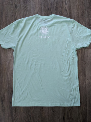 Cute SPAM Musubi design in collaboration with famous local musubi shop Musubi Cafe Iyasume. Printed on a fine, jersey fitted Mint Tee, 60% combed ringspun cotton, 40% Polyester. 4.3 oz, 32 singles. Set-in rib collar with shoulder-to-shoulder taping, double-needle sleeve and bottom hems.