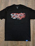 Dragon design on the front in Red & Silver, and our Shaka icon on the back right ribcage on a Black, 6 oz. 100% Cotton Tubular Jersey. High quality double-needle stitching on bottom hem and sleeves. Shoulder-to-shoulder tape. Preshrunk to minimize shrinkage.