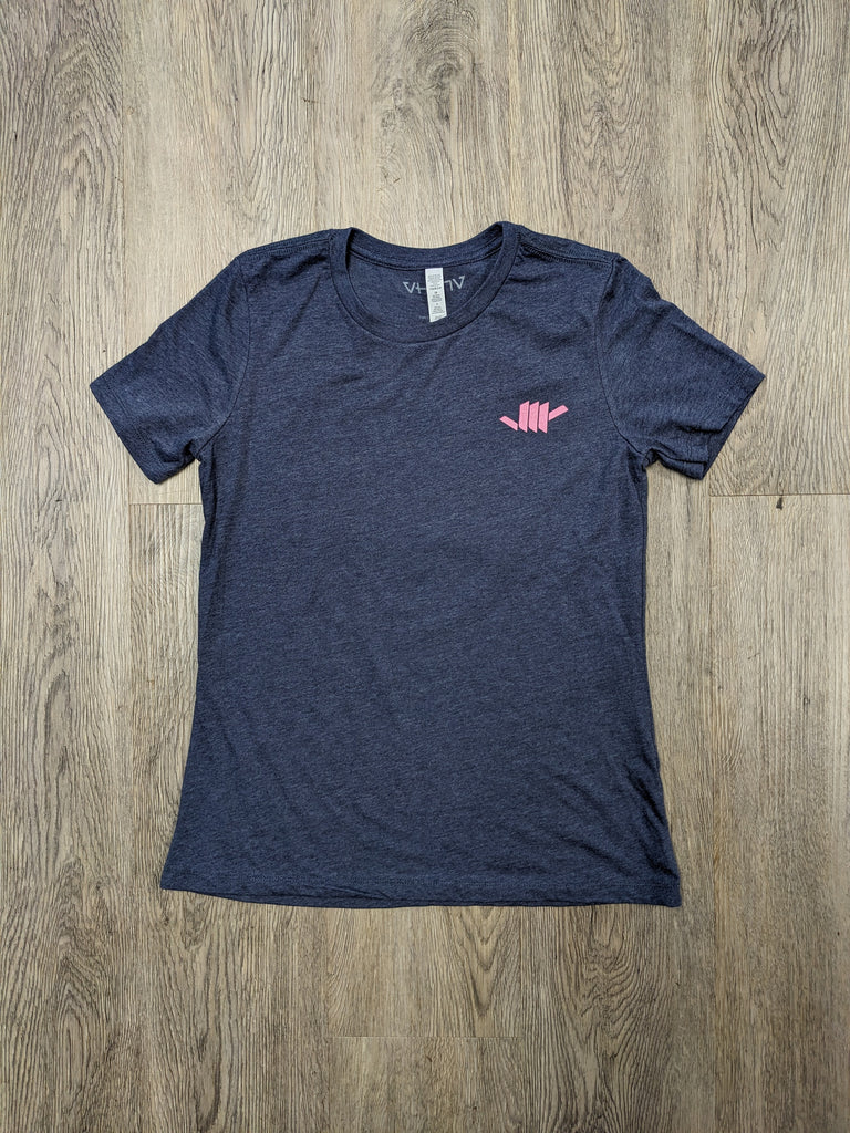 New "Bloom" design on the back of this lightweight and super soft ladies casual fit T-shirt. Features a crew neck, short sleeves, sideseams, and extremely popular heather CVC fabric. 52% Airlume combed and ring-spun cotton / 48% Poly, 32 single 4.2 oz. *Disclaimer: Due to the specialized washing process, each shirt is unique.